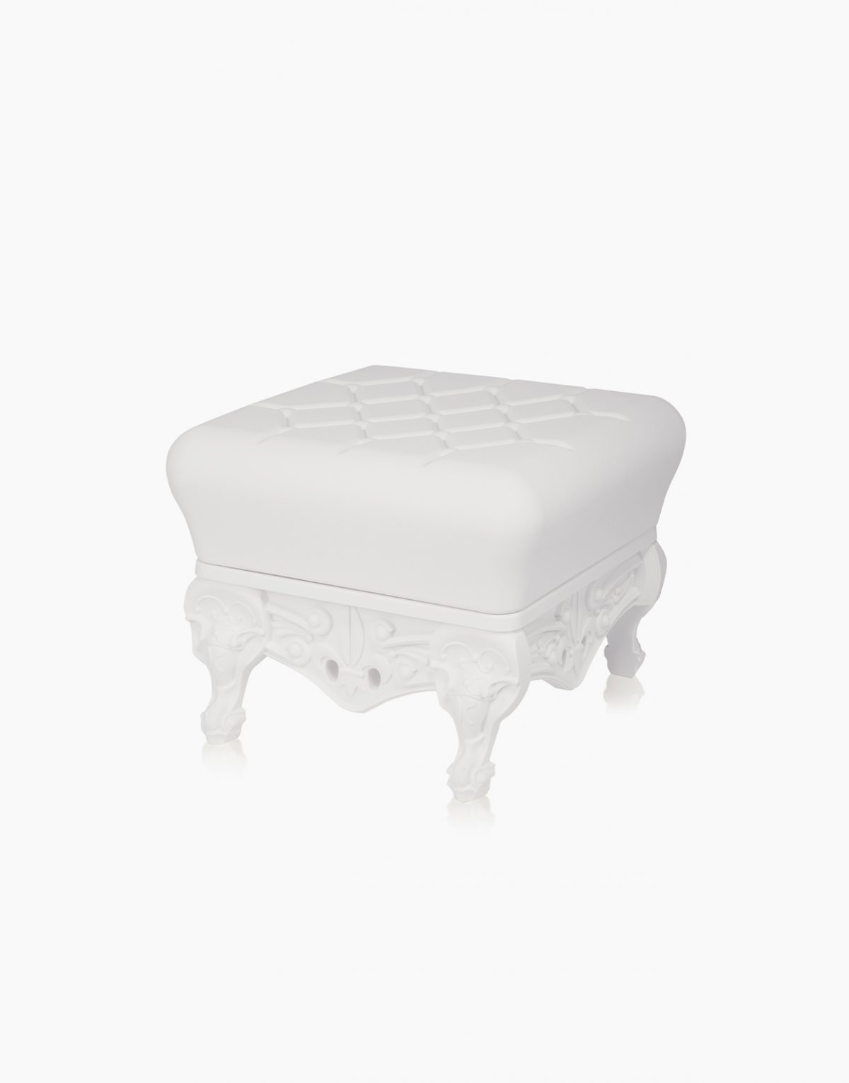 Little Prince of Love est un pouf qui reprend l'esprit ironique et pop de toute la collection Design of Love : c'est le complément parfait qui rend le fauteuil Queen of Love complet, avec ses pieds cintrés et ses riches détails typiques du style baroque, mais en conservant toute la contemporanéité du polyéthylène avec lequel il est réalisé, Little Prince of Love a une structure modulaire qui vous permet de combiner deux couleurs différentes pour l’assise et les jambes, créant ainsi un élément ameublement unique.